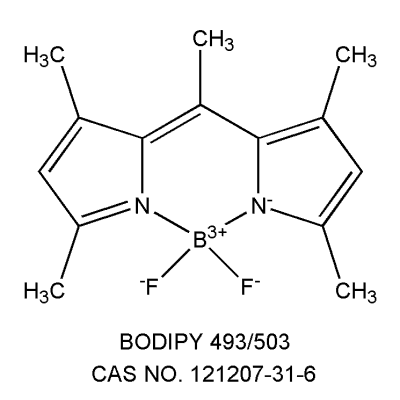 BODIPY 493/503是一種親脂性熒光探針,定位在極性脂上,能用于標(biāo)記細(xì)胞中性脂內(nèi)容物,特別定位在活細(xì)胞和固定細(xì)胞的脂滴上。BODIPY 493/503與落射熒光顯微鏡、共聚焦熒光顯微鏡和雙質(zhì)子熒光顯微鏡,以及流式細(xì)胞儀兼容。最大激發(fā)和發(fā)射波長(zhǎng)分別是493/503nm,適用于活細(xì)胞和固定細(xì)胞標(biāo)記。