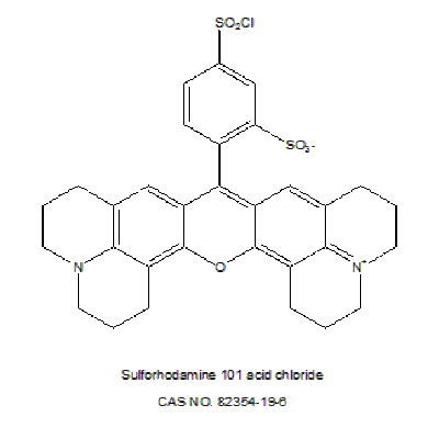 2)同義名:Sulforhodamine 101 sulfonyl chloride; Sulforhodamine 640; Texas Red德克薩斯紅(德州紅); Texas Red sulfonyl chloride;